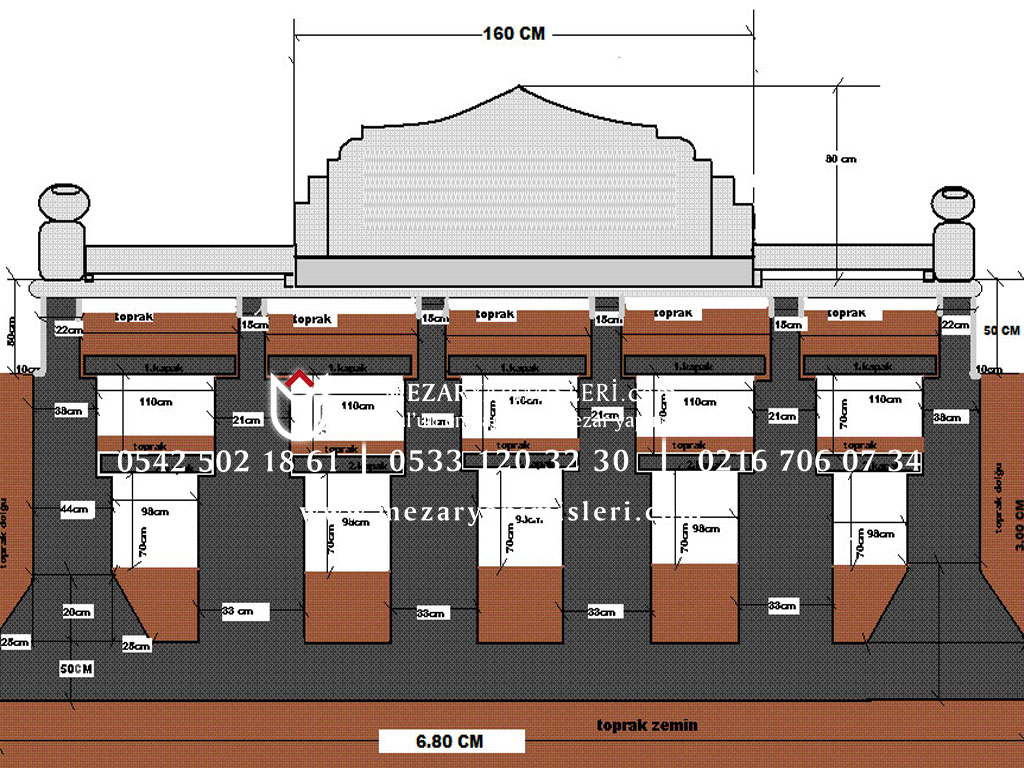 Gerek cenaze defninden önce, gerekse cenaze defin tarihinden 1 yıl geçtikten sonra betonarmeden tezyinatla yapılmış olan mezar yeridir. Cenazeler beton kapaklar üzerine değil tamamen toprak üzerine defin edilir.